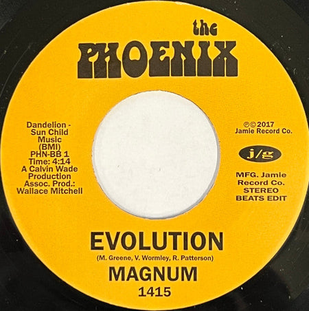 Evolution (Beats Edit) / It’s The Music That Makes Us Do It is a 7-inch single released by the California-based funk band Magnum in 2017 on The Phoenix / Brewerytown Beats label. The record is a high-quality reissue aimed at both collectors and DJs, featuring a freshly remastered and re-edited version of a cult classic on the A-side, and a long-sought-after deep cut on the B-side.