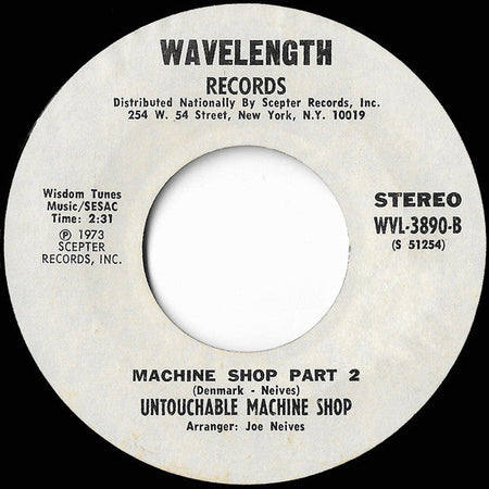 “Machine Shop” by The Untouchable Machine Shop is a raw and heavy-hitting funk 7″ single originally released in 1973 on Wavelength Records, distributed by Scepter Records. Issued as a two-part single — Part 1 on the A-side and Part 2 on the B-side — the record delivers tight, rhythm-driven funk built around a deep, mechanical groove that epitomizes early-1970s instrumental funk craftsmanship.